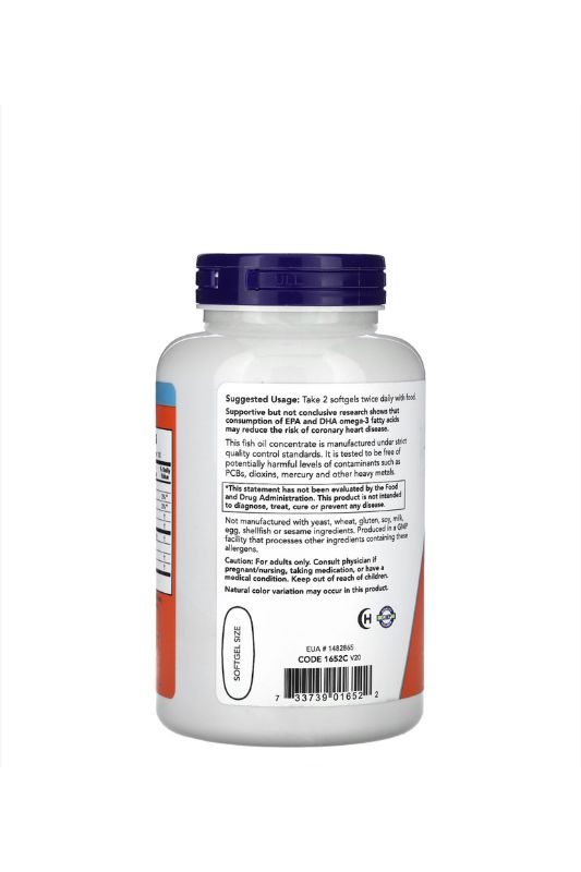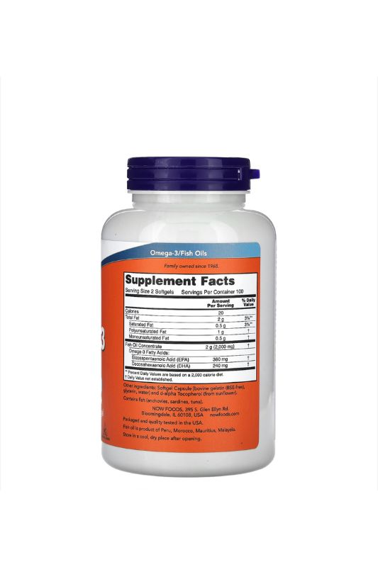 NOW Omega-3 הוא תוסף שמן דגים איכותי המספק חומצות שומן חיוניות EPA ו־DHA, הנחשבות לבעלות יתרונות בריאותיים מוכחים. אומגה 3 של NOW מיוצרת ממקורות שמן דגים מובחרים, בתהליך המבטיח טוהר מרבי וללא מתכות כבדות, ומציעה תמיכה מקיפה בבריאות הלב, תפקוד המוח וניידות המפרקים.